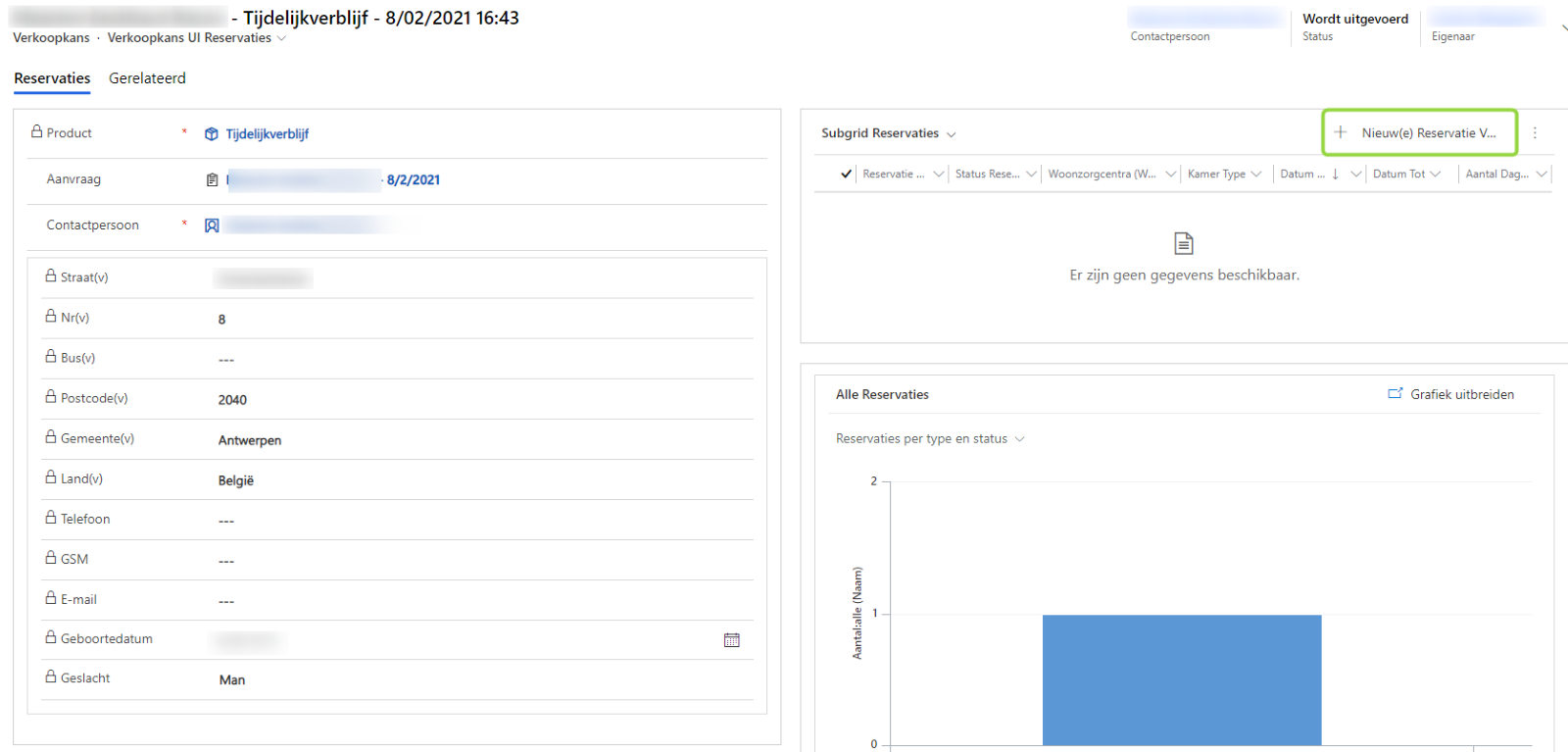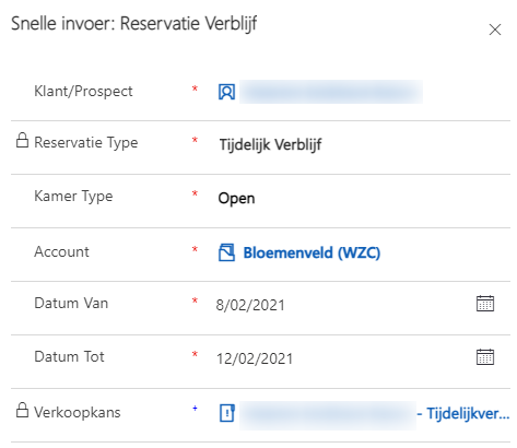 - Vul de gegevens van de reservatie aan en sla op.