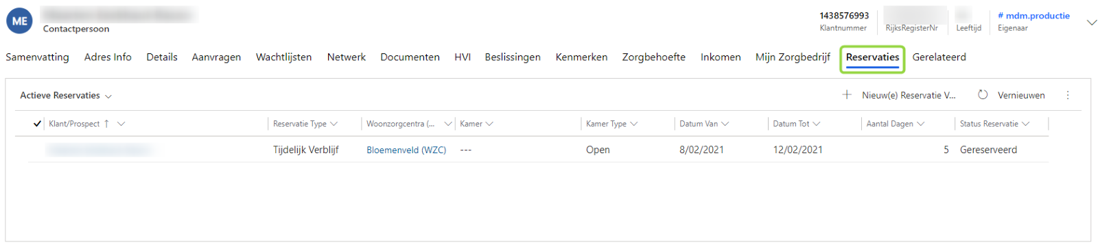 - Op de klantfiche kan je de reservatie terugvinden onder het tabblad Reservaties